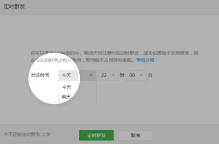 為了方便公眾號運營者更靈活地推送消息,公眾平臺新增定時群發(fā)功能,開放給所有公眾號使用。”